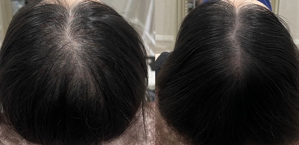 写真ではわかりにくいですが、少し増えたのが自覚できるようになりました。サイドで分けると立ち上がりがあり、ボリュームが出たことがわかります。